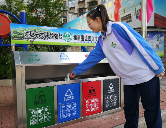 近日,市中學校園內多了幾個“龐然大物”,幾個嶄新的四格垃圾桶亮相,不少師生往垃圾桶里投擲雜物時,都會先看清楚每個桶上的垃圾分類標志。